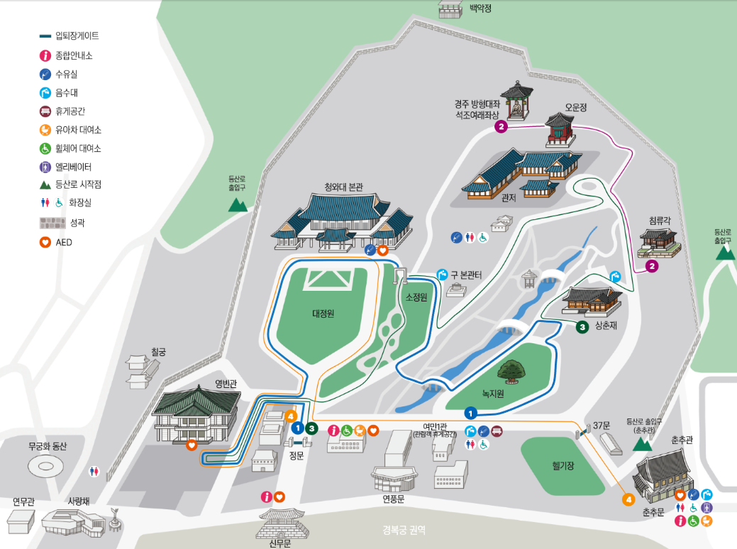 - 버스 이용 시 '청와대 앞' 정류장 하차
